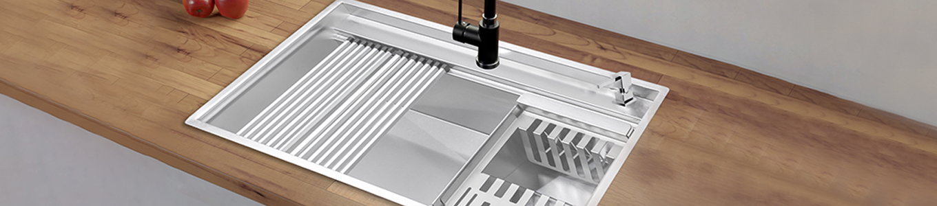 This sink comes with a sloping fruit basket, a liquid soap dispenser, and a dish rack to help you organize your kitchen and facilitate cleaning. The sloping fruit basket makes washing fruits and vegetables easier, and the liquid soap dispenser and dish rack add to the sink's beauty and functionality.