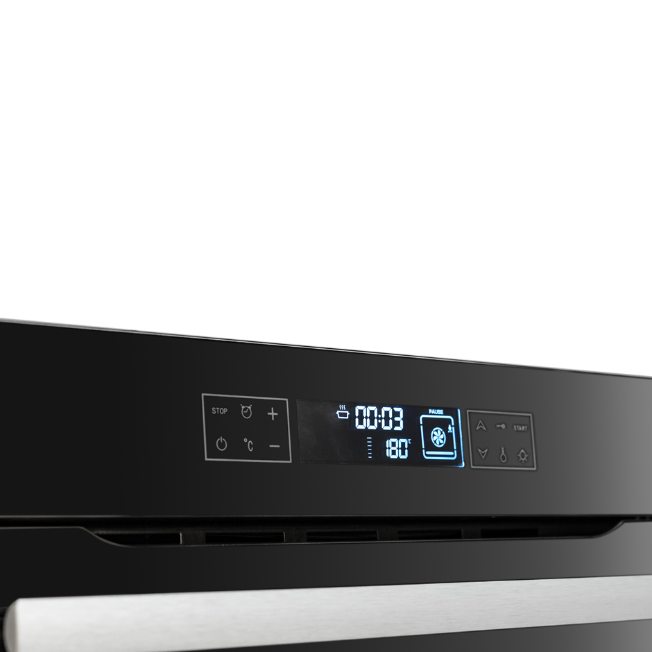 فر توکار درسا مدل DF4112-82 به یک نمایشگر دیجیتال مجهز است که در کنار صفحه کلید لمسی، امکان کنترل آسان دما، زمان و برنامههای پخت را فراهم میکند.